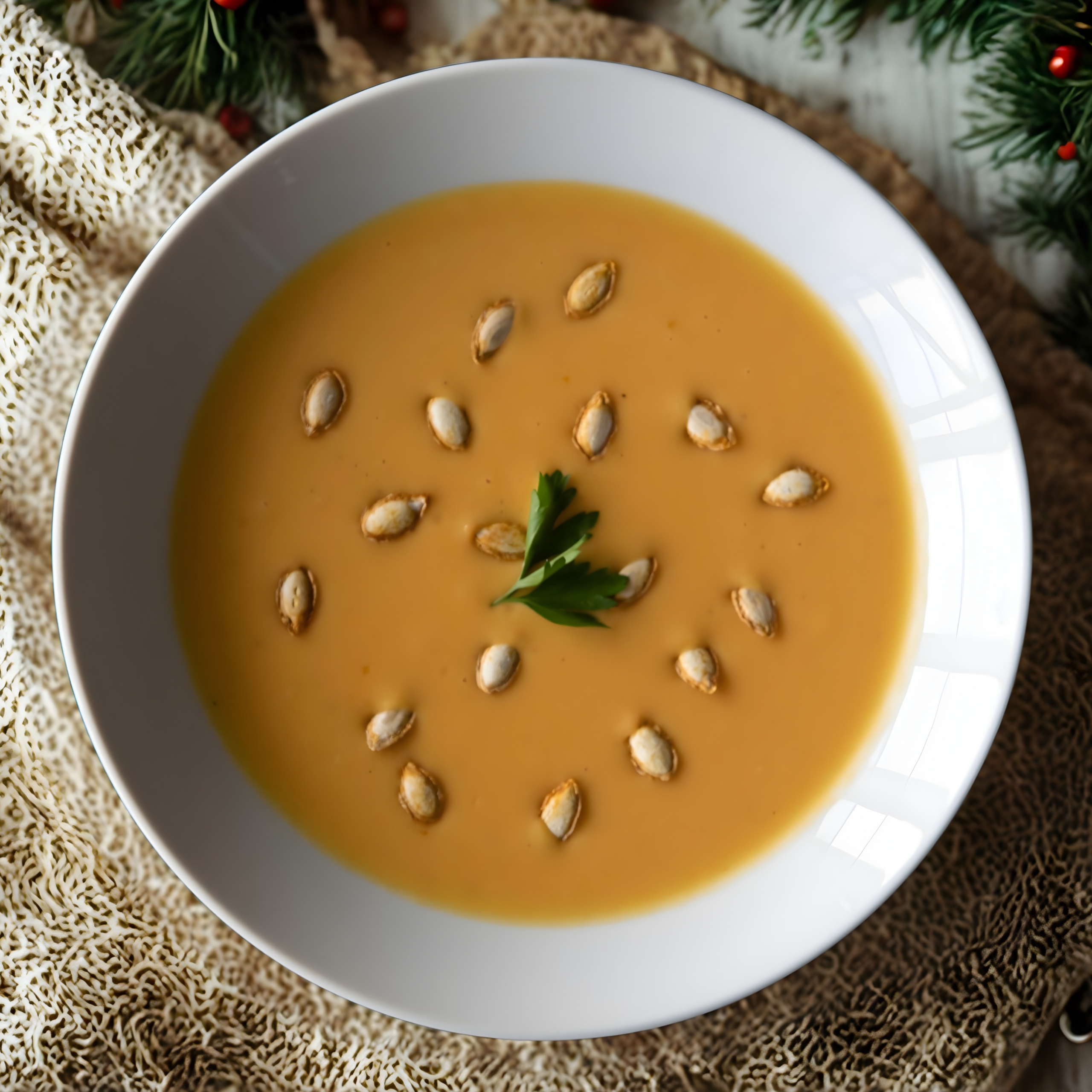 Calabaza de castilla rostizada, especiada con hierbas y especias de temporada y molida para conseguir una textura aterciopelada. Ideal para la época de frío.